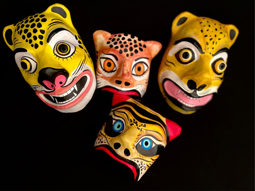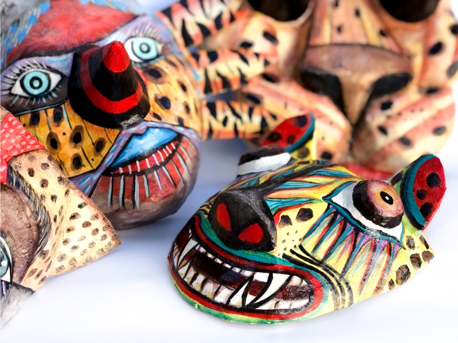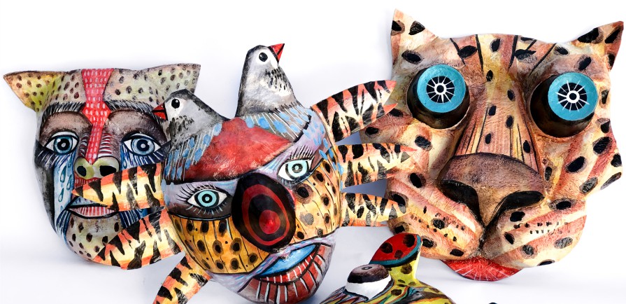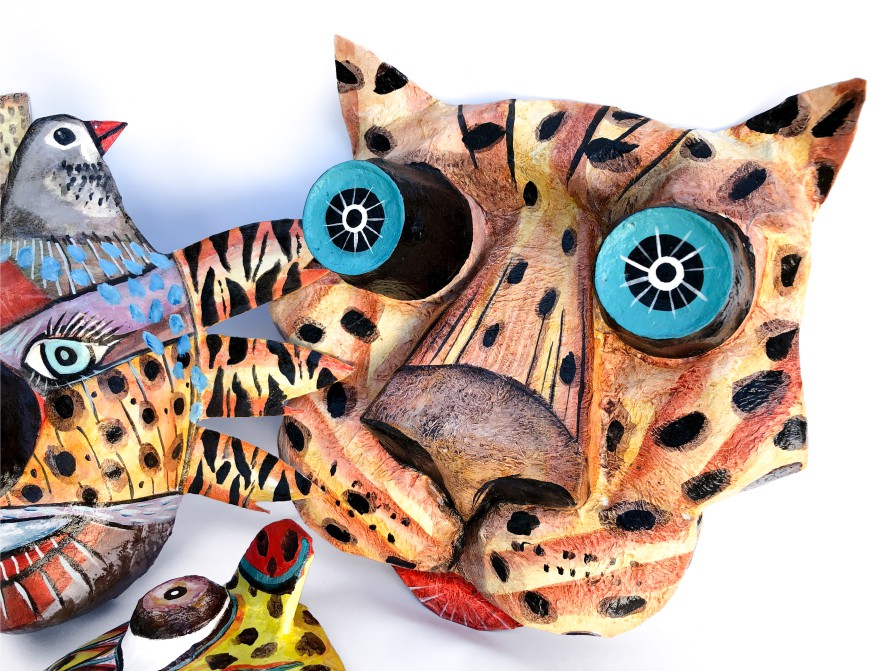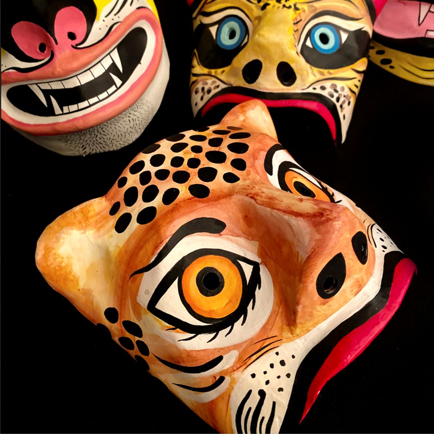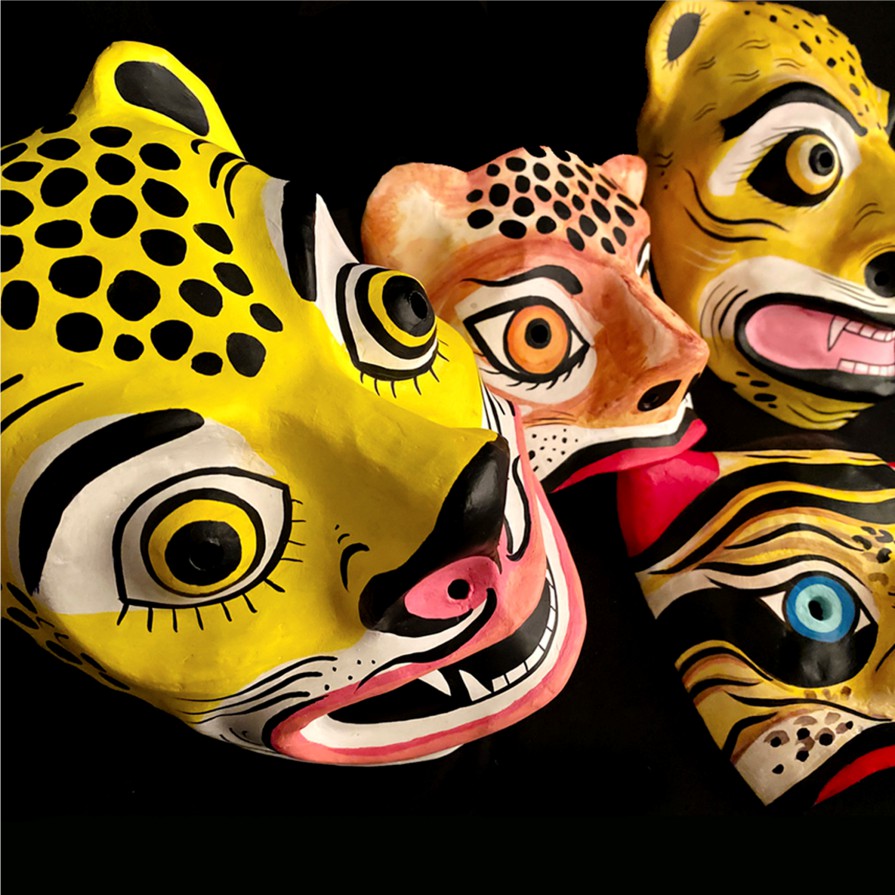 Máscaras rituales realizadas en cartapesta. Serie de trabajo denominada "Imaginería personal: Jaguas".