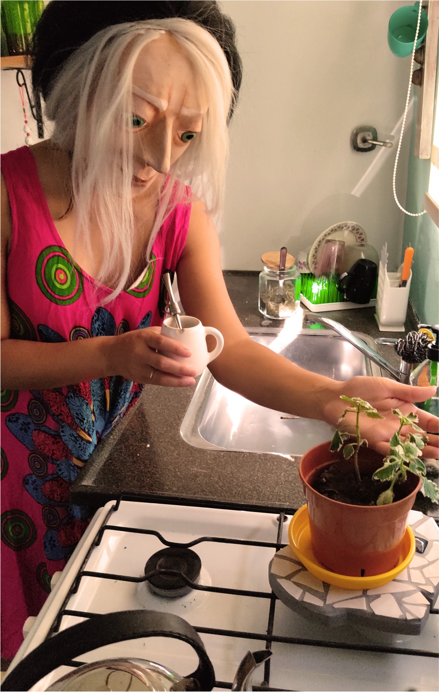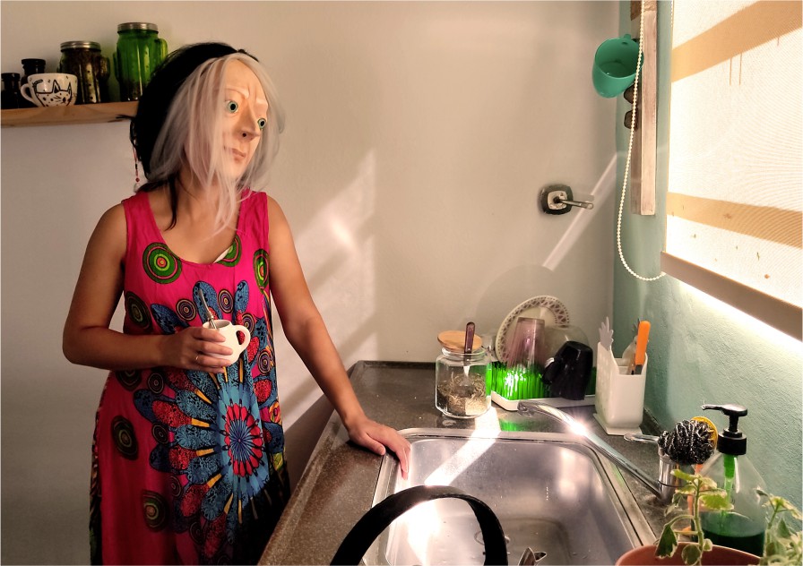 “El domingo de Aurora". Mascara teatral. Máscara expresiva. Máscara de Carácter. Performance. Año de realización: 2021.